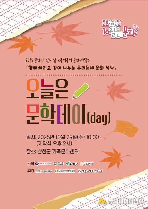 산청군은 오는 29일 가족문화센터에서 ‘오늘은 문학데이(day)’를 운영한다고 24일 밝혔다.
