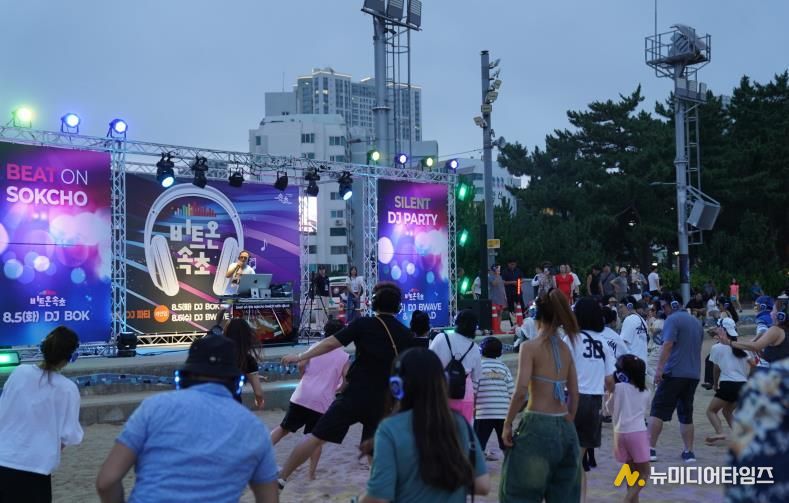 ‘비트온(BEAT ON) 속초’는 올해 8월 4일부터 6일까지 3일간 진행됐으며, 파워 유튜버 ‘춤추는 곰돌’과 함께한 K-POP 랜덤댄스, 속초시 야간관광 대표 브랜드 ‘빛의 바다 속초’ 미디어아트, 무선 헤드폰을 활용한 무소음 DJ파티 등으로 구성됐다.