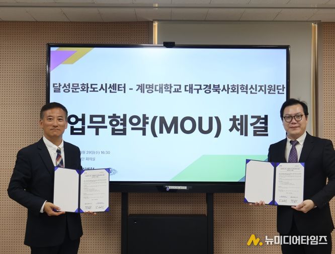 (재)달성문화재단(이사장 최재훈) 달성문화도시센터는 지난 29일 계명대학교 대구경북사회혁신지원단(단장 신진교)과 업무협약을 체결했다고 밝혔다.