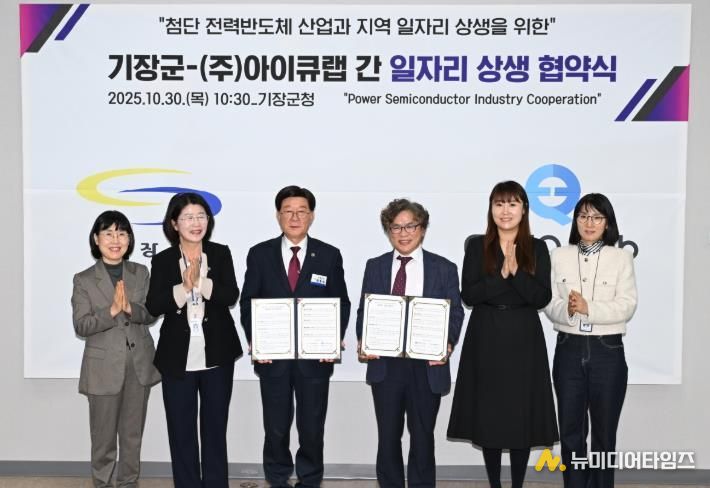 기장군은 30일 전력반도체 분야 첨단 기술기업인 ㈜아이큐랩과 ‘지역 일자리 상생 협약’을 체결하고, 지역 일자리 창출에 박차를 가한다고 밝혔다.