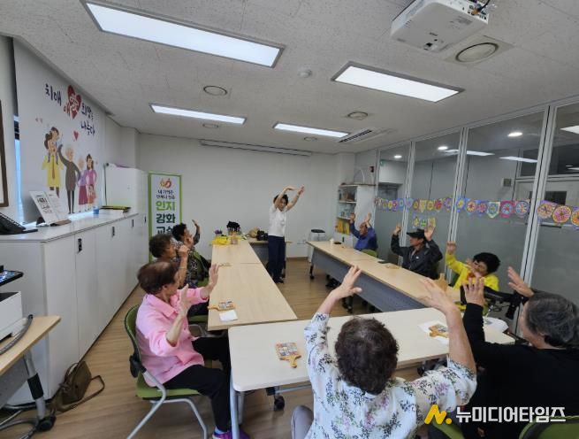 ‘인지강화교실’은 어르신들의 기억력·주의력·집중력 향상과 인지기능 유지 및 강화를 목표로, ▲두뇌활동 훈련 ▲회상치료 ▲미술·공예활동 ▲음악·신체활동 등 다양한 인지자극형 프로그램으로 구성됐다.