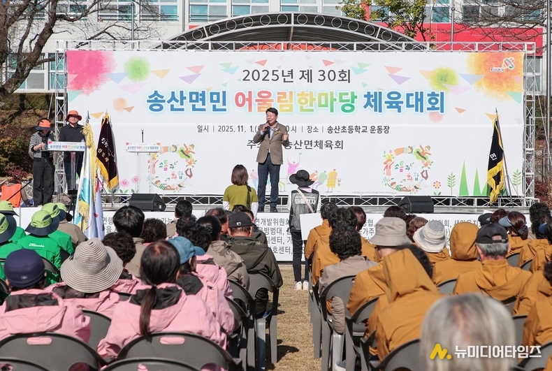송산면민이 한자리에 모여 화합과 우정을 다진 ‘제30회 송산면민 어울림한마당체육대회’가 지난 11월 1일(토) 오전 10시, 송산초등학교 운동장에서 성황리에 개최됐다. 이번 행사는 송산면체육회가 주최하고 지속가능상생재단, 현대제철(주), (주)제이엔텍, 송산면개발위원회, 이장단협의회, 송산면행정복지센터, 송산농협 등 다수의 기관과 단체가 후원했다.