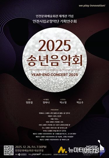 인천시립교향악단이 한 해의 마지막을 화려하게 장식할 인천문화예술회관 재개관 기념 기획연주회 〈2025 송년음악회〉의 프로그램과 티켓 예매 일정을 전격 공개했다.