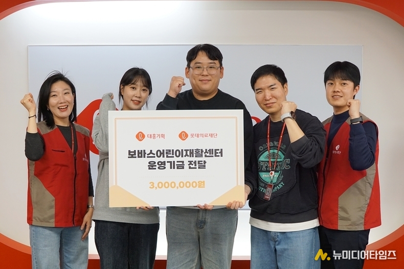 대홍기획(대표이사 김덕희)은 임직원들의 자발적 참여로 운영된 사내 사회공헌 프로그램 **‘기부마켓’**의 수익금 총 300만원을 롯데의료재단(이사장 김천주) 산하 하남 보바스병원 어린이재활센터 운영기금으로 전달했다고 6일 밝혔다.