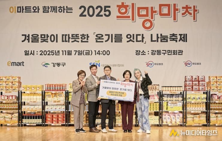 서울 강동구는 지난 11월 7일, 강동구민회관 3층 대강당에서 저소득 및 복지사각지대 주민 400가구를 위한 ‘이마트와 함께하는 2025 겨울맞이 희망마차 식품나눔’ 행사를 열고, 지역에 따뜻한 나눔의 온기를 전했다.