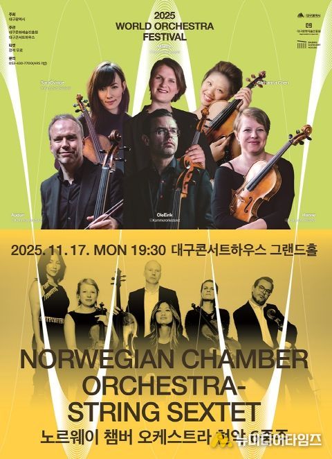 (재)대구문화예술진흥원 대구콘서트하우스는 오는 11월 17일 저녁 7시 30분, 그랜드홀에서 2025 월드오케스트라페스티벌’의 하나로 노르웨이 챔버 오케스트라 공연을 개최한다.