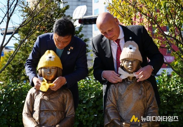 이승로 구청장은 “평화의 소녀상이 전하는 아픔과 인권의 메시지를 늘 마음에 새기고 있으며, 소녀상이 춥지 않도록 작은 온정을 전하고 싶었다”며 “앞으로도 양 도시가 힘을 모아 인권과 인간의 존엄성을 상징하는 평화의 소녀상을 함께 지켜나가길 기대한다”고 밝혔다.
