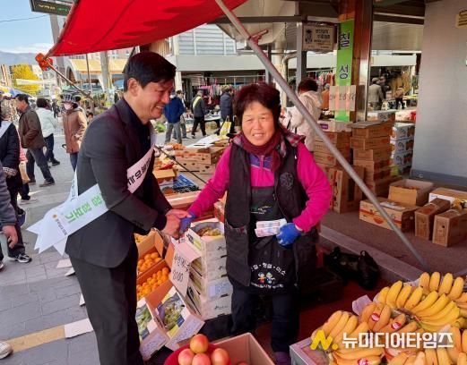 이현창 전라남도의원(더불어민주당, 구례)은 지난 11월 13일 구례 5일시장을 방문해 '전통시장 장보기 및 기부 캠페인'에 참여했다.