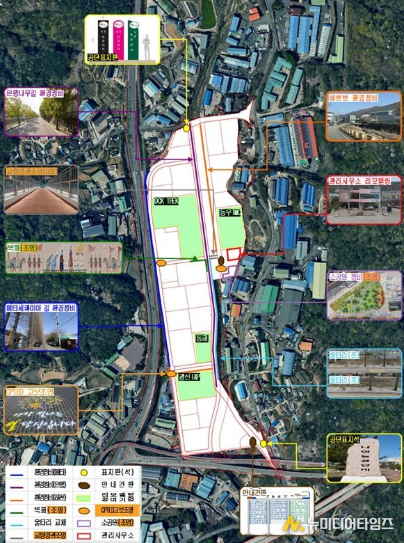 벽화길 조성, 경관조명 설치, 셉테드 조명을 도입해 어두운 산업단지 중심거리의 안전성과 미관을 동시에 개선한다.