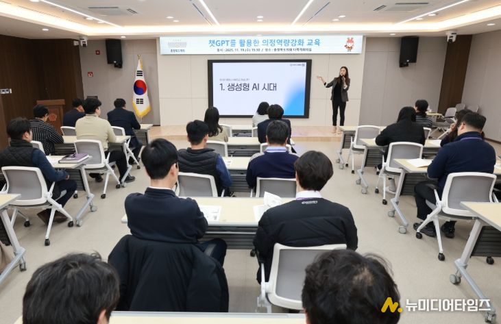 충북도의회는 19일 도의회 다목적실에서 빠르게 변화하는 인공지능(AI) 환경 속에서 도의원 및 직원들의 정책 대응력을 높이기 위해 ‘챗GPT를 활용한 의정역량 강화 교육’을 실시했다.