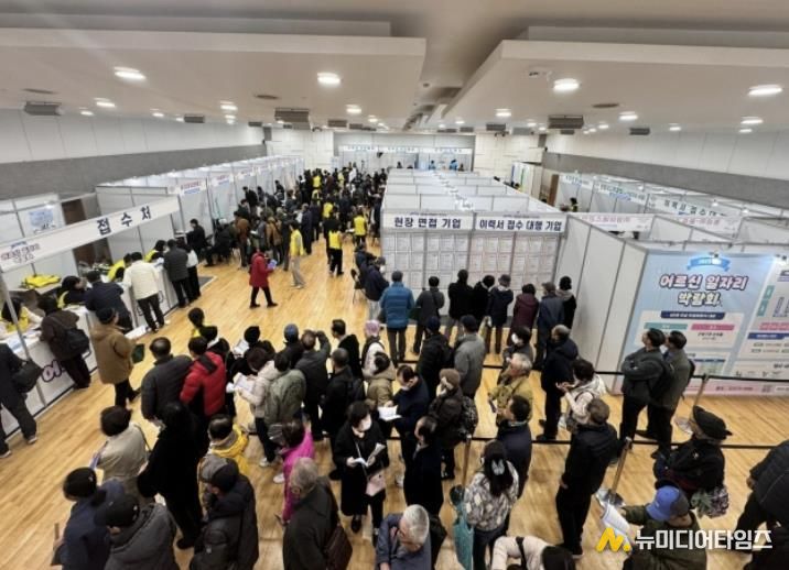 참여한 32개 민간업체 중 17개 업체가 현장에서 면접을 진행했으며, 부스마다 면접을 기다리는 어르신들로 붐볐다.