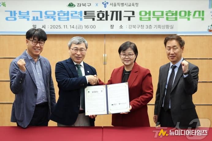 서울특별시교육청은 지역의 교육여건과 환경을 반영해 특색 있는 교육을 제공하고 어린이‧청소년의 전인적 성장을 지원하는 ‘서울교육협력특화지구’ 사업을 내년부터 추진한다. 이를 위해 25개 자치구와 순차적으로 협약을 맺고 있으며, 강북구 또한 이번 협약을 통해 사업 추진에 참여하게 됐다.