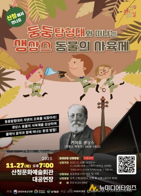 산청군은 오는 27일 문화예술회관 대공연장에서 ‘둥둥탐험대와 함께하는 생상스 동물의 사육제’ 공연을 개최한다고 20일 밝혔다.