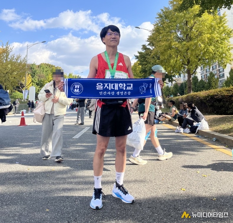 김인식 을지대학교 산학협력단장(을지대 임상병리학과 교수)이 을지대의료원과 을지대의 뜻깊은 기념비적 해들을 앞두고, 멈추지 않는 도전과 책임의 의미를 새기며 국제마라톤대회 풀코스를 완주했다.