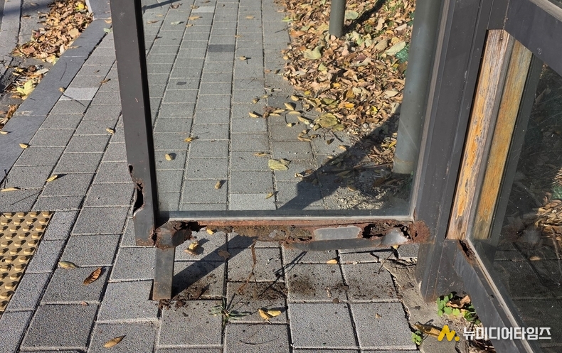 정 의원은 최근 주민 민원이 이어진 보라동 쌍용아파트·현대1차·신창미션힐 버스정류소를 직접 방문해 실태를 점검한 결과, 철제 기둥과 프레임이 심하게 녹슬고 일부는 파손된 상태임을 확인했다. 일부 부위에서는 녹슨 금속 파편이 떨어져 나가 구조적 기능이 약화됐으며, 주변 보도블록에는 녹물이 스며들어 붉게 변색된 흔적도 발견됐다.