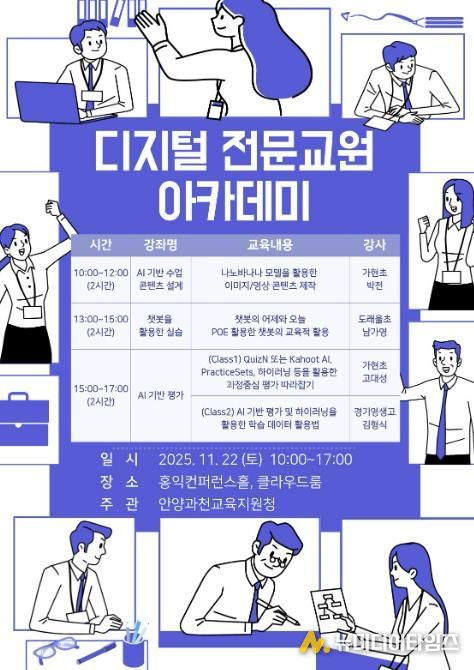 경기도안양과천교육지원청은 11월 22일, 디지털 역량을 체계적으로 강화하기 위한 디지털 전문교원 아카데미 연수를 운영했다. 이번 전문과정에는 관내 초등 교원 30명이 참여해 AI 기반 수업 콘텐츠 설계, 챗봇을 활용한 실습, AI기반 평가, 디지털 문해력 기반 수업 혁신 전략 등 심화 전문 영역을 학습했다.