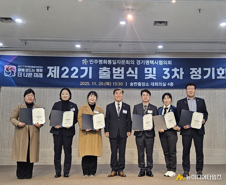 민주평화통일자문회의 평택시협의회가 20일 오후 송탄출장소 대회의실에서 제22기 평택시협의회 출범식 및 이·취임식, 그리고 2025년 3분기 정기회의를 개최했다. 행사에는 자문위원 118명을 비롯해 130여 명이 참석했다.