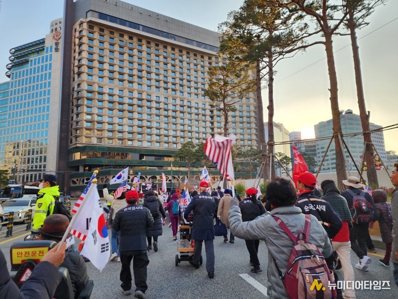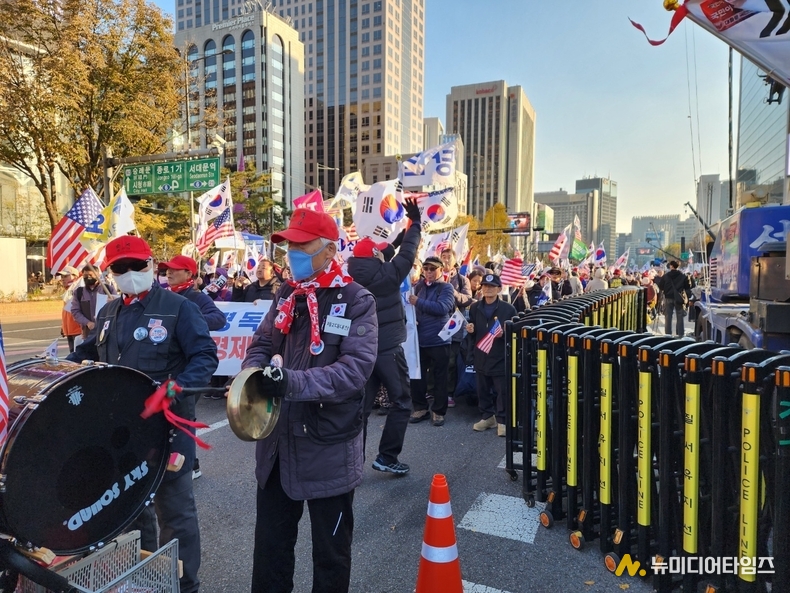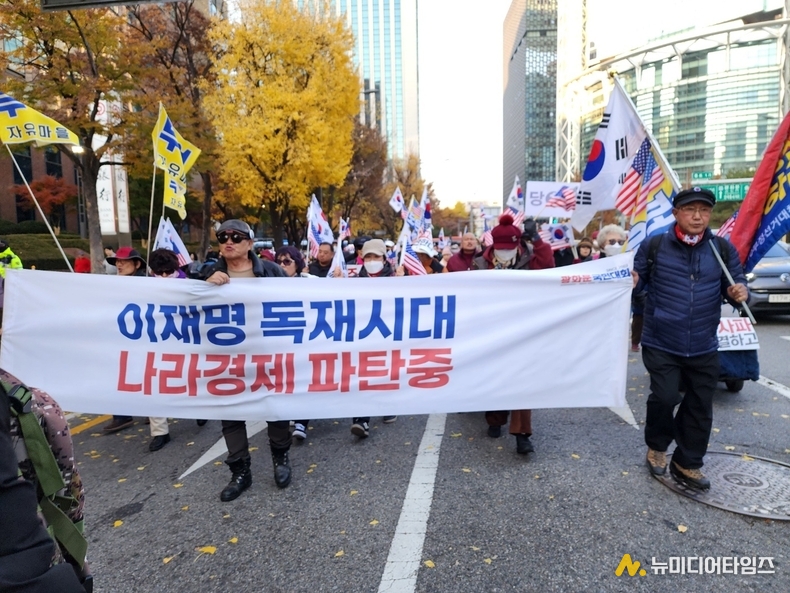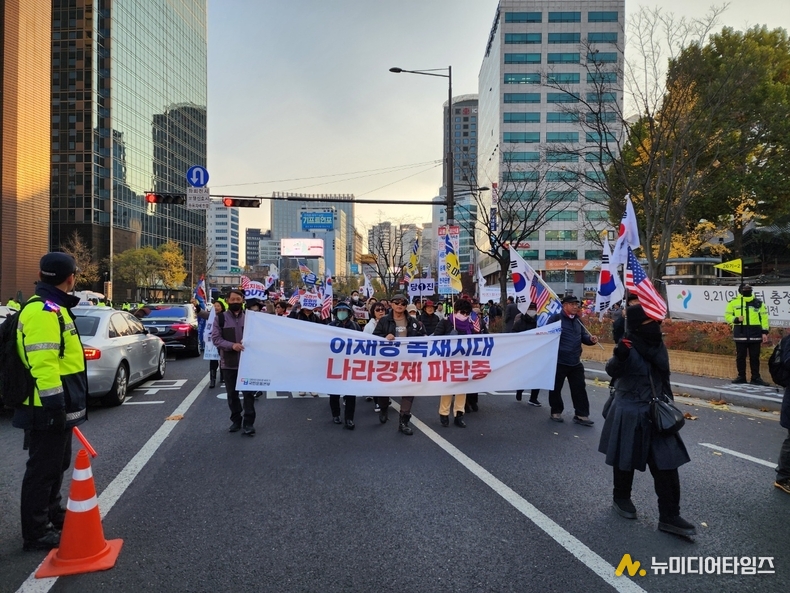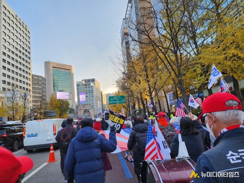 11월 22일 토요일, 광화문에서 열린 '자유통일을 위한 국민대회'가 본집회를 성공적으로 마치고, 충청 지역 참가자들의 뜨거운 열기 속에 대규모 거리 행진을 시작했다. 주최 측은 이날 행진의 선두를 충청 지역 참가자들에게 맡기며 이들의 애국심을 높이 평가했다.
