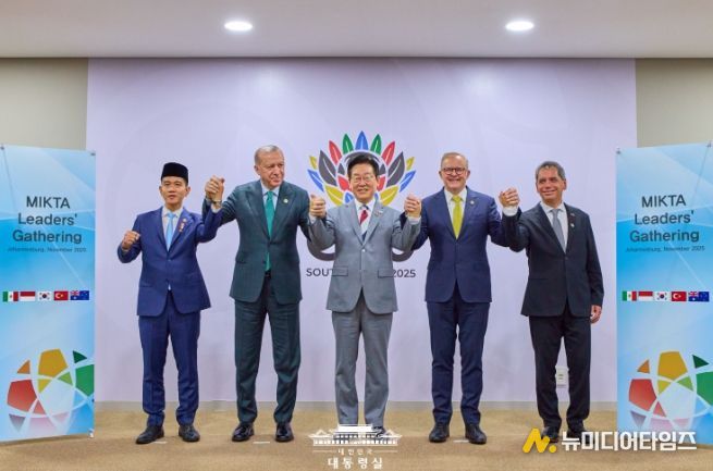 주요 20개국(G20) 정상회의 참석을 위해 남아프리카공화국을 방문한 이재명 대통령은22일(현지시간) 오후 우리나라, 멕시코, 인도네시아, 튀르키예, 호주 5개국으로 구성된 믹타(MIKTA) 회원국 정상들과 회동했다.