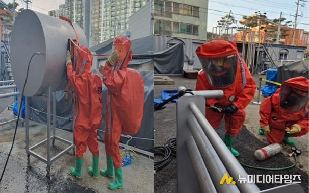 특히 실제 상황을 가정해 구조대원들이 화학사고 대응 장비를 직접 활용하여 누출 차단·제독·이송 절차를 반복 숙달하는 실전형 중심 훈련을 진행했다.