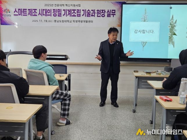 이번 특강은 지난 8월 체결된 충남도립대학교–충청남도 명장회 간 산학협력 업무협약의 후속 프로그램으로, 산업현장에서 요구되는 실제 기술과 직무 경험을 학습하기 위해 마련됐다.