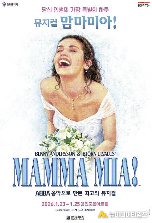 용인문화재단은 오는 2026년 1월 23일부터 25일까지 뮤지컬 ‘맘마미아!’를 용인포은아트홀에서 개최한다고 밝혔다. 관람 연령은 초등학생 이상으로, 겨울방학 기간 가족·친구·연인 등 남녀노소 누구나 함께 즐길 수 있는 대표 뮤지컬을 3일간 총 4회에 걸쳐 선보인다.