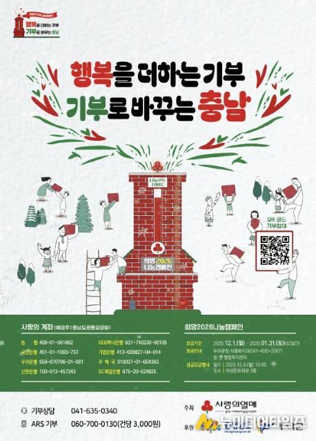 부여군은 충남사회복지공동모금회와 함께 내달 1일부터 2026년 1월 31일까지 62일간 ‘희망 2026 나눔 캠페인’을 실시한다고 밝혔다.