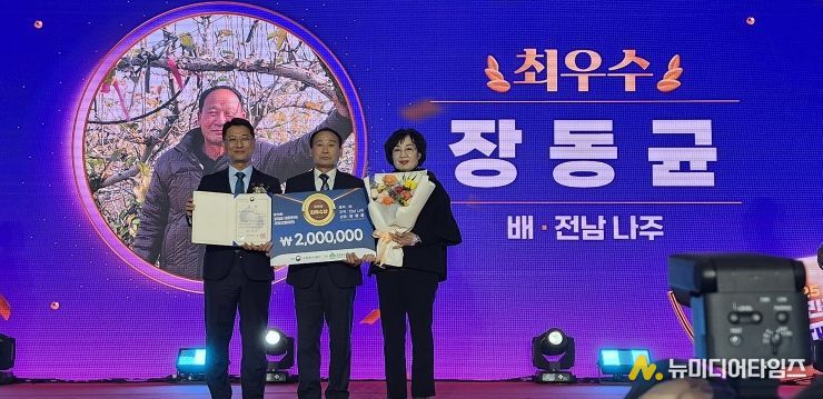 나주시에 따르면 지난 27일 대전컨벤션센터에서 열린 ‘2025 대한민국 과일산업대전 대표과일 선발대회’에서 세지면 장동균 농가가 신품종 배 품목으로 최우수상인 장관상을 수상했다.
