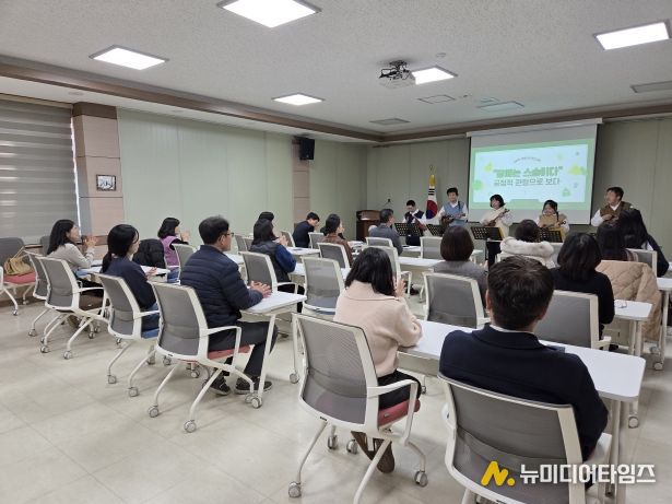 특히 교육 시작 전, 음성군장애인복지관 악기음악단(장애인식개선 파트너 강사)의 우쿨레레·젬베 연주 공연이 진행되어 장애인의 삶과 이야기를 공감할 수 있는 시간을 제공하며 큰 호응을 얻었다.