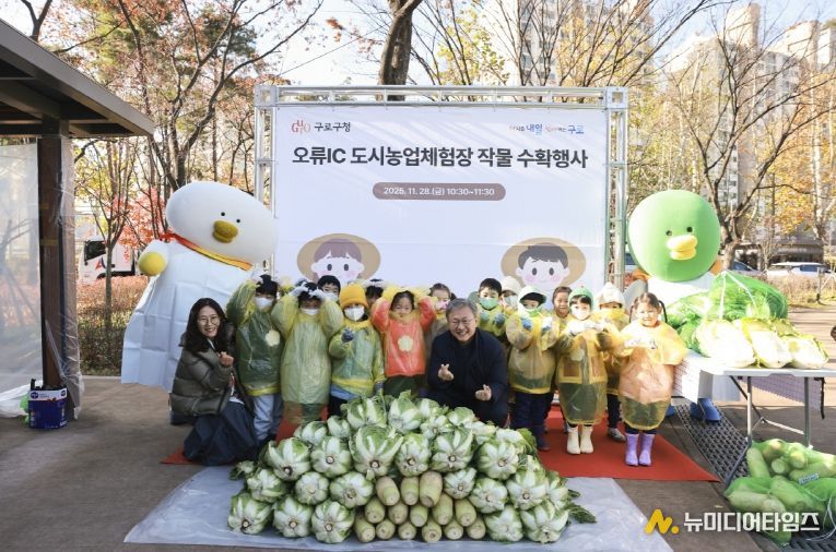 이날 행사에는 장인홍 구로구청장을 비롯한 관내 보육시설 원아 50명 등이 참석해 도시농업체험장에서 재배한 배추 30포기와 무 20개를 수확한 뒤 김장 체험을 했다.