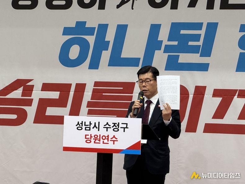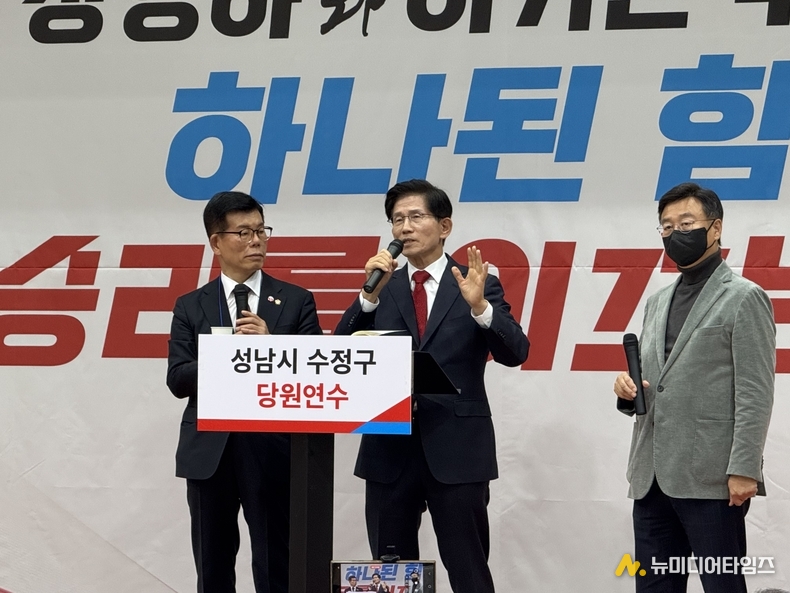 그는 "동지 여러분, 우리가 바로잡읍시다. 성남을 지키고 대한민국을 지킵시다"라며 규탄사를 마무리했다.