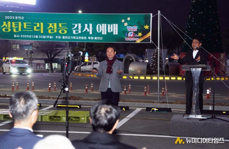 홍천군은 11월 30일 오후 5시, 홍천터미널 앞 회전교차로에서 홍천군기독교연합회(회장 김남성) 주관으로 성탄 트리 점등식을 개최했다.