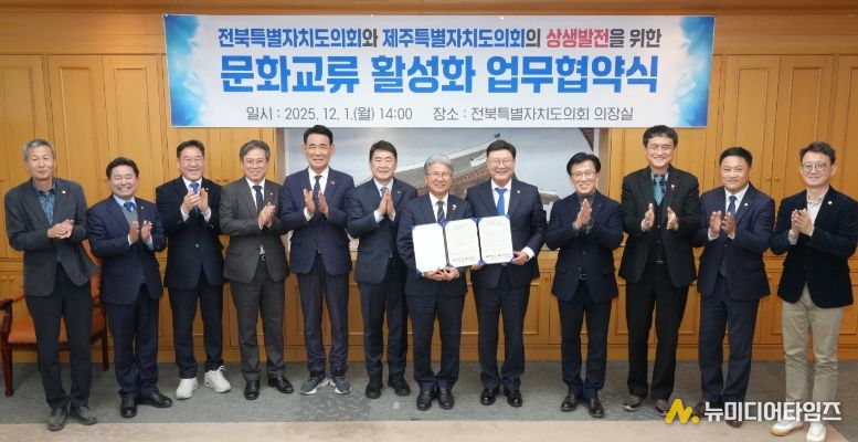 전북특별자치도의회와 제주특별자치도의회는 문화·관광·세계유산 분야 협력을 강화하기 위해 1일 전북도의회 의장실에서 문화교류 활성화 업무협약(MOU)을 체결했다.