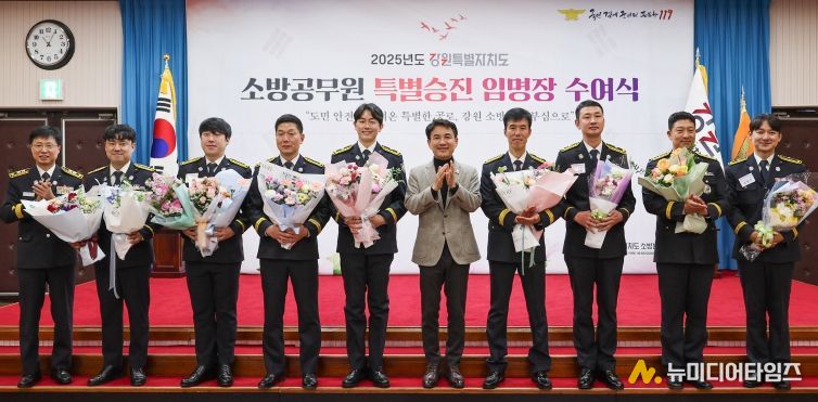 강원특별자치도는 12월 3일 도청 신관 대회의실에서 도민의 생명과 안전을 지키는 데 헌신한 우수 소방공무원 8명에 대해 특별승진 임용장 수여식을 개최했다고 밝혔다.