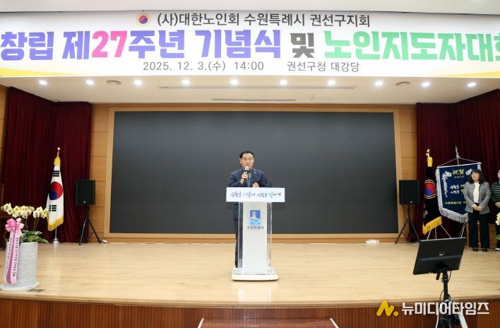 수원특례시의회는 3일 권선구청 대회의실에서 열린‘대한노인회 수원시 권선지구 제27주년 기념식 및 노인지도자대회’에 참석해 어르신 지도자들의 노고를 축하하고 격려했다.