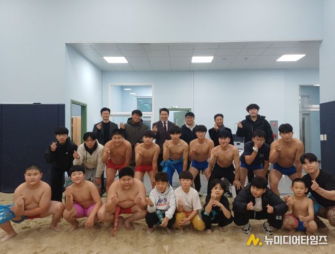 충청남도태안교육지원청은 지난 12월 2일 태안중학교 씨름장을 방문해 2026년 각종 대회를 대비해 동계훈련 중인 백화초등학교와 태안중학교 씨름부 학생 선수들을 격려했다.
