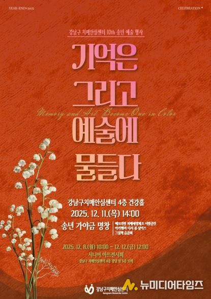 꿈이 모이는 도시, 미래를 그리는 강남구가 12월 8일부터 12일까지 강남구치매안심센터에서 송년 예술 행사 ‘기억은 그리고 예술에 물들다’를 열고, 한 해 동안 치매 예방과 인지건강 관리를 위해 노력한 어르신들과 그 가족들의 작품을 전시한다.
