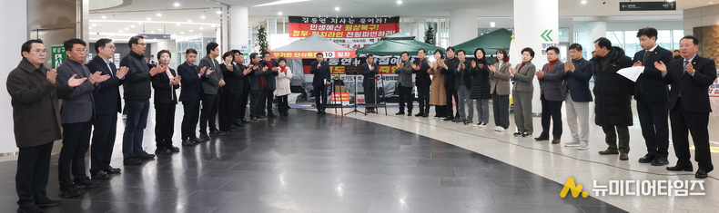 국민의힘은 지난달 25일 투쟁 선포식을 열고 백현종 대표의원의 삭발과 단식을 시작으로 전격 투쟁에 돌입했다. 백 대표의원을 필두로 국민의힘 의원 74명이 한마음으로 동참한 이번 투쟁은 기획재정위원회를 시작으로 각 상임위별로 이어졌으며, 천막농성장에는 지지와 격려를 보내는 도민들의 발걸음이 끊이지 않았다.