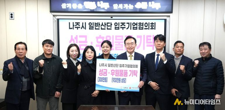 전라남도 나주시는 지난 3일 나주 일반산단 입주기업협의회가 연말연시를 맞아 지역 내 취약계층 지원을 위해 ‘희망 2026 나눔 캠페인 성금’ 300만 원과 자체 생산한 식료품 960만 원 상당 등 총 1260만 원을 기탁했다고 밝혔다.