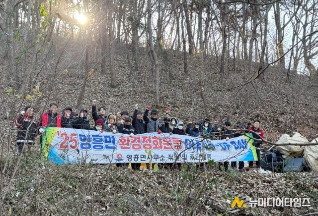 이번 정화활동은 영하 5도의 추운날씨에도 불구하고 외1리 마을주민 등 40여명이 참여하여 ‘깨끗한 영흥 만들기’구호 아래 청소가 취약한 산림속 쓰레기들을 수거하고 마을 환경정비에 구슬땀을 흘렸다.