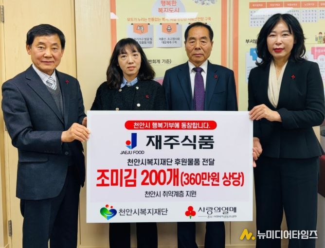 (재)천안시복지재단은 5일 재주식품이 취약계층을 위한 360만 원 상당의 별난맛김 200개를 후원했다고 밝혔다.
