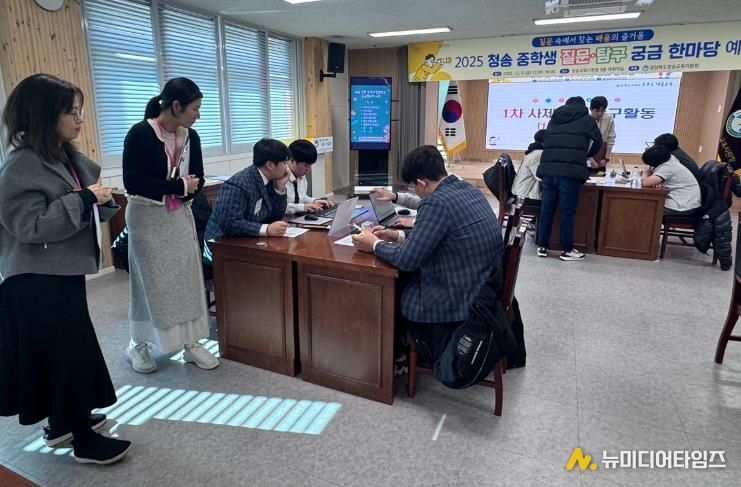 경상북도청송교육지원청은 12월 5일 13시 청송교육지원청 대회의실에서 관내 중학교 3학년 학생들을 대상으로 ‘2025 경북 중학생 질문탐구 궁금한마당’ 청송군 예선을 성공적으로 개최했다.