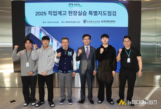 충청북도교육청은 5일 오후, 청주 오송생명과학단지에 위치한 첨단생명공학 전문기업 (주)메타바이오메드(대표 오석송)를 방문하여 2025년 직업계고 현장실습 특별 점검을 실시했다.