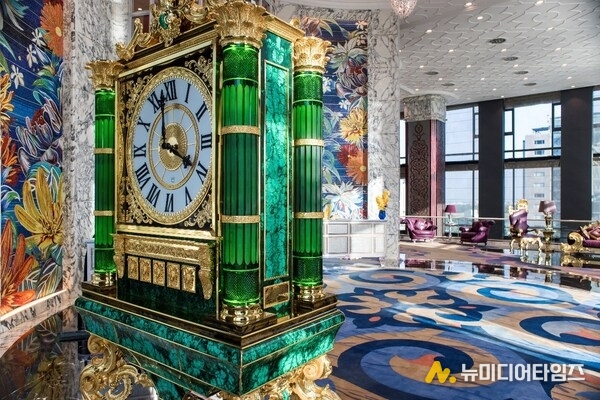 7층 로비에 들어서면 에메랄드빛 공작석으로 제작된 3미터 높이의 발디(Baldi) 기념 시계와 5미터짜리 24K로 도금한 콜롬보스틸(Colombostile) 소파가 호화롭고 웅장한 분위기를 연출한다.