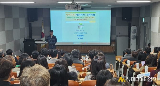 이번 연수는 2026학년도 변경된 사학기관 예산편성 지침을 중심으로 ▲학교회계·법인회계 예산편성 기본사항 ▲예·결산 반복 지적 사례 ▲실무 중심 교육 내용을 다뤄 회계 투명성과 업무 효율성을 높였다.