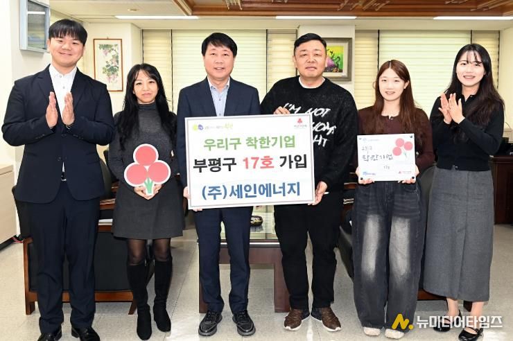 부평구는 산곡동 소재 ㈜세인에너지가 ‘우리구 착한기업’ 제17호로 가입했다고 15일 밝혔다.