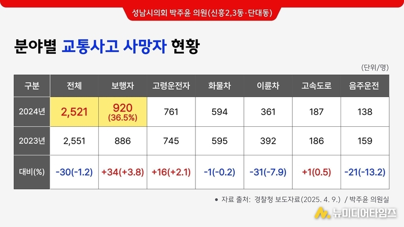 박 의원은 "단 5미터의 거리 확보가 한 사람의 소중한 생명을 지킬 수 있다"며 "성남시가 보행자 안전을 최우선으로 하는 도시가 되길 바란다"고 말했다.