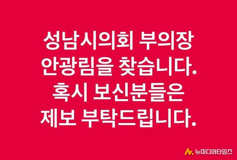 현재 성남시의회는 국민의힘이 16석, 더불어민주당이 18석(지역구 14석, 비례대표 4석)을 차지하고 있다. 안광림 부의장은 이덕수 전 의장의 직무정지 이후 의장직무대리를 수행해왔다.