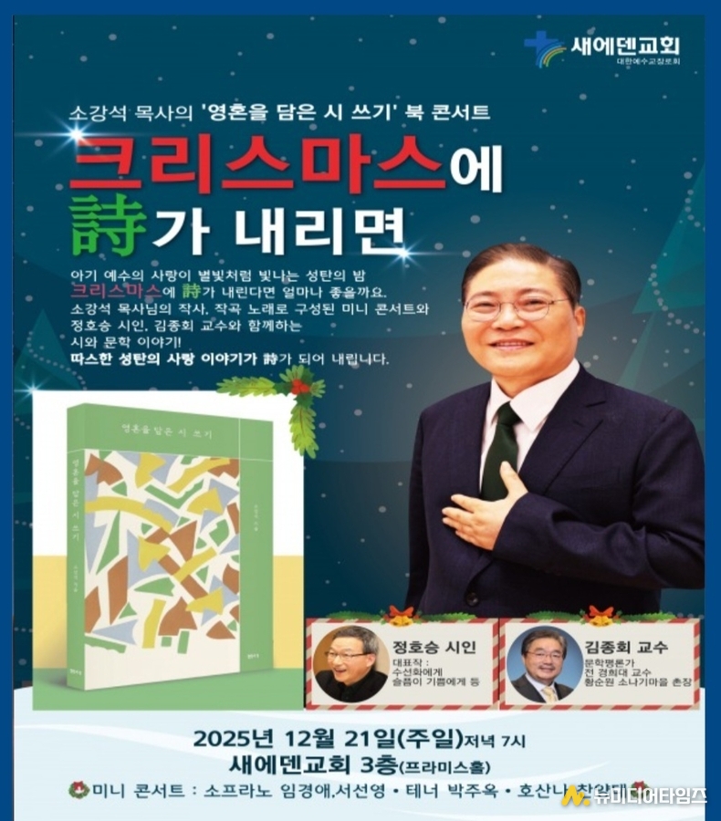 윤동주문학상과 천상병귀천문학대상을 수상한 시인이자 목회자인 소강석 새에덴교회 목사가 신간 『영혼을 담은 시 쓰기』 출판을 기념해 북콘서트를 연다.