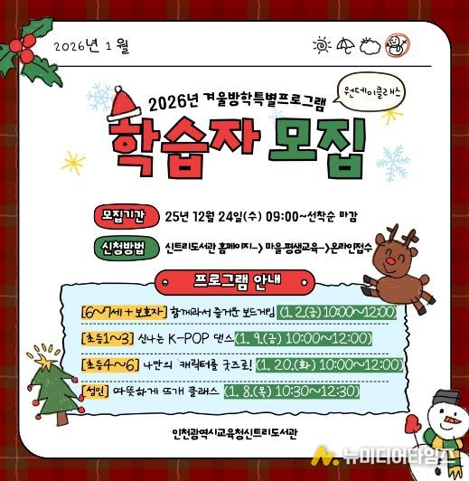 프로그램 신청은 12월 24일부터 신트리도서관 누리집에서 가능하며 선착순으로 접수한다.